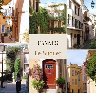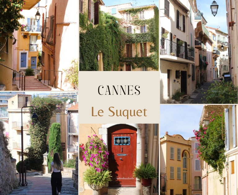 Le site était déjà occupé à l’époque romaine par un campement ligure en raison de sa position stratégique sur la colline. Au Moyen Âge, au XIᵉ siècle, les moines de Lérins (de l’abbaye de Saint-Honorat, sur l’île voisine) y construisent un château fort pour protéger la population contre les invasions. Ce château, appelé Castre, devient le cœur du quartier. Autour du château se développe peu à peu un village médiéval fortifié, avec des ruelles étroites, des maisons en pierre et des remparts. Le Suquet était alors le centre administratif et religieux de Cannes, bien avant le développement du bord de mer. Jusqu’au XIXᵉ siècle, le Suquet reste le cœur vivant de Cannes, peuplé de pêcheurs et d’artisans. Puis, avec la venue de l’aristocratie européenne et la naissance du tourisme balnéaire, la ville s’étend vers la mer et la Croisette.
